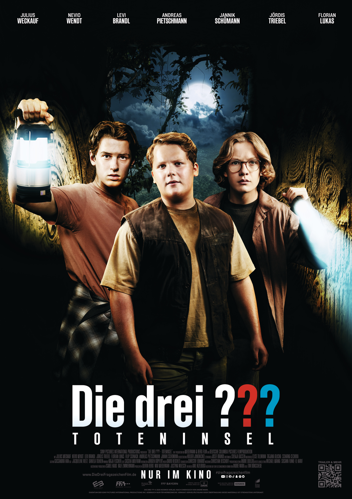 Kaum haben die Sommerferien begonnen, planen Justus (Julius Weckauf), Peter (Nevio Wendt) und Bob (Levi Brandl) einen Roadtrip. Doch bevor sie aufbrechen können, bringt ein anonymer Anruf in der Zentrale ihre Pläne ins Wanken: Ein neuer Fall wartet auf die drei Detektive. Ihre Ermittlungen führen sie zu einem geheimnisvollen Geheimbund namens Sphinx. Angeführt wird die Organisation vom undurchsichtigen Professor Phoenix (Andreas Pietschmann) und dessen Assistenten Olin (Jannik Schümann). Die Gruppe betreibt illegale Ausgrabungen und verkauft geraubte Artefakte gewinnbringend weiter. Schon bald richtet sich der Fokus auf die Vulkaninsel Makatao, die unter dem Namen Toteninsel gefürchtet ist. Dort befindet sich eine Grabstätte, um die sich düstere Legenden ranken – angeblich soll niemand, der die Insel betritt, je zurückkehren. Trotz der Gefahr begibt sich Sphinx auf eine Expedition dorthin. Welche Motive stecken hinter dieser riskanten Unternehmung? Und welche Rolle spielt der einflussreiche Unternehmer Joseph Saito Hadden (Simon Kluth) bei dem Vorhaben?