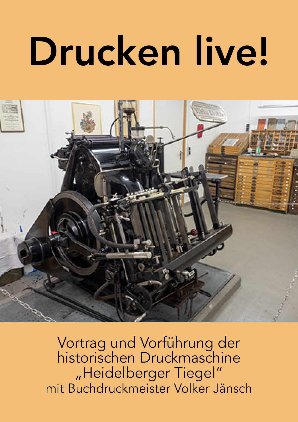 Buchdruckmeister Volker Jänsch gibt eine Einführung in die besondere Kunst des Buchdrucks und erklärt die Entwicklung von Gutenbergs Erfindung bis in die heutige Zeit. In der museumseigenen Druckwerkstatt demonstriert er außerdem die historische Druckmaschine „Heidelberger Tiegel“ und zeigt, was den Buchdruck so besonders macht.