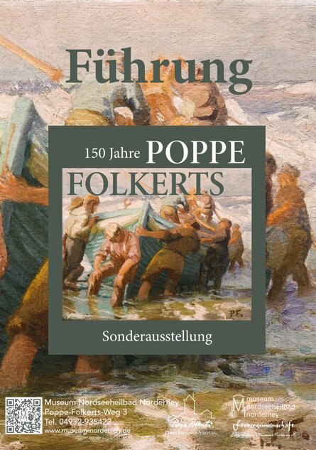 Anlässlich des 150. Geburtstags von Poppe Folkerts (1875–1949 lädt das Museum Nordseeheilbad Norderney in Kooperation mit der Poppe-Folkerts-Stiftung und der Fördergemeinschaft Poppe-Folkerts-Museum zu einer Führung durch die Jubiläumsausstellung ein. Während der Führung erhalten Besucherinnen und Besucher Einblicke in das umfangreiche Werk des auf Norderney geborenen Künstlers. Gezeigt werden rund 120 Gemälde, darunter kraftvolle Seestücke, stimmungsvolle Landschaften sowie charakteristische Porträts. Ergänzt wird die Schau durch Zeichnungen, Lithografien und Radierungen, die das breite Spektrum von Folkerts’ künstlerischer Ausdruckskraft verdeutlichen.