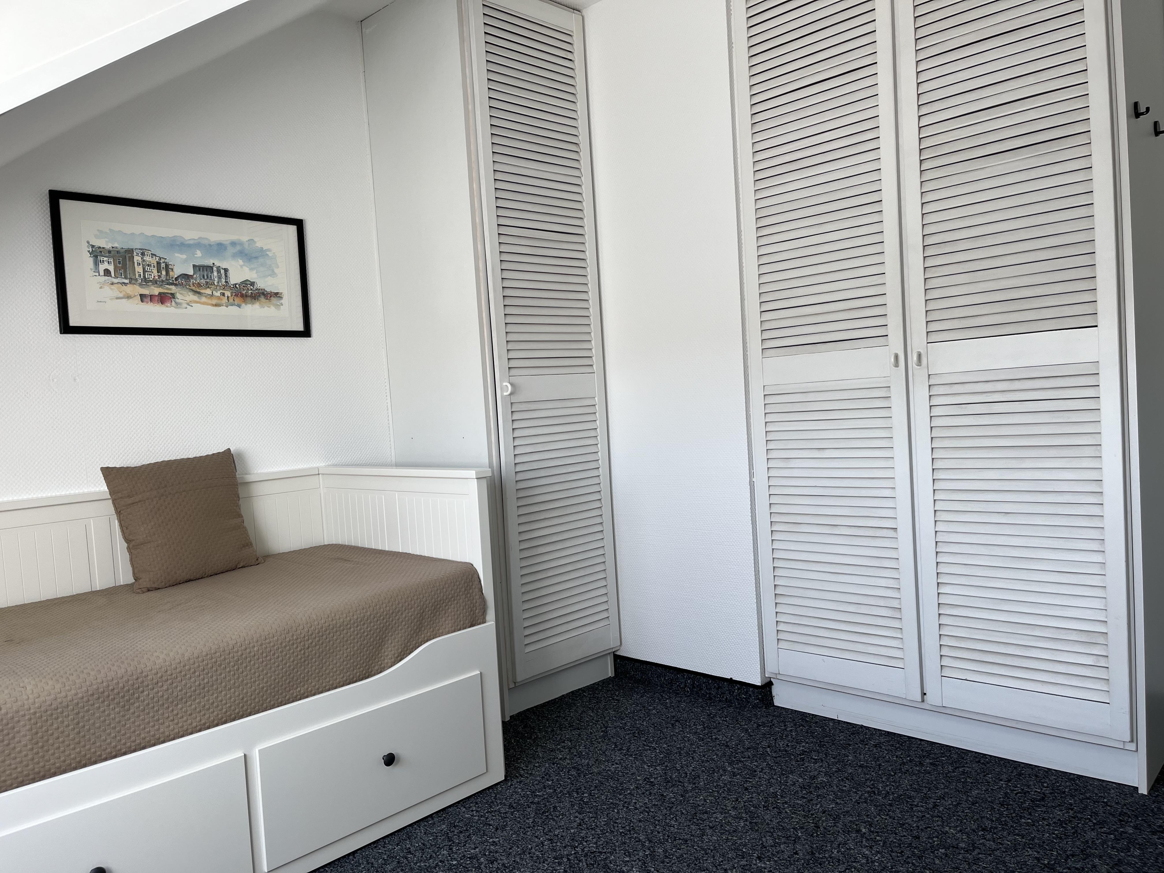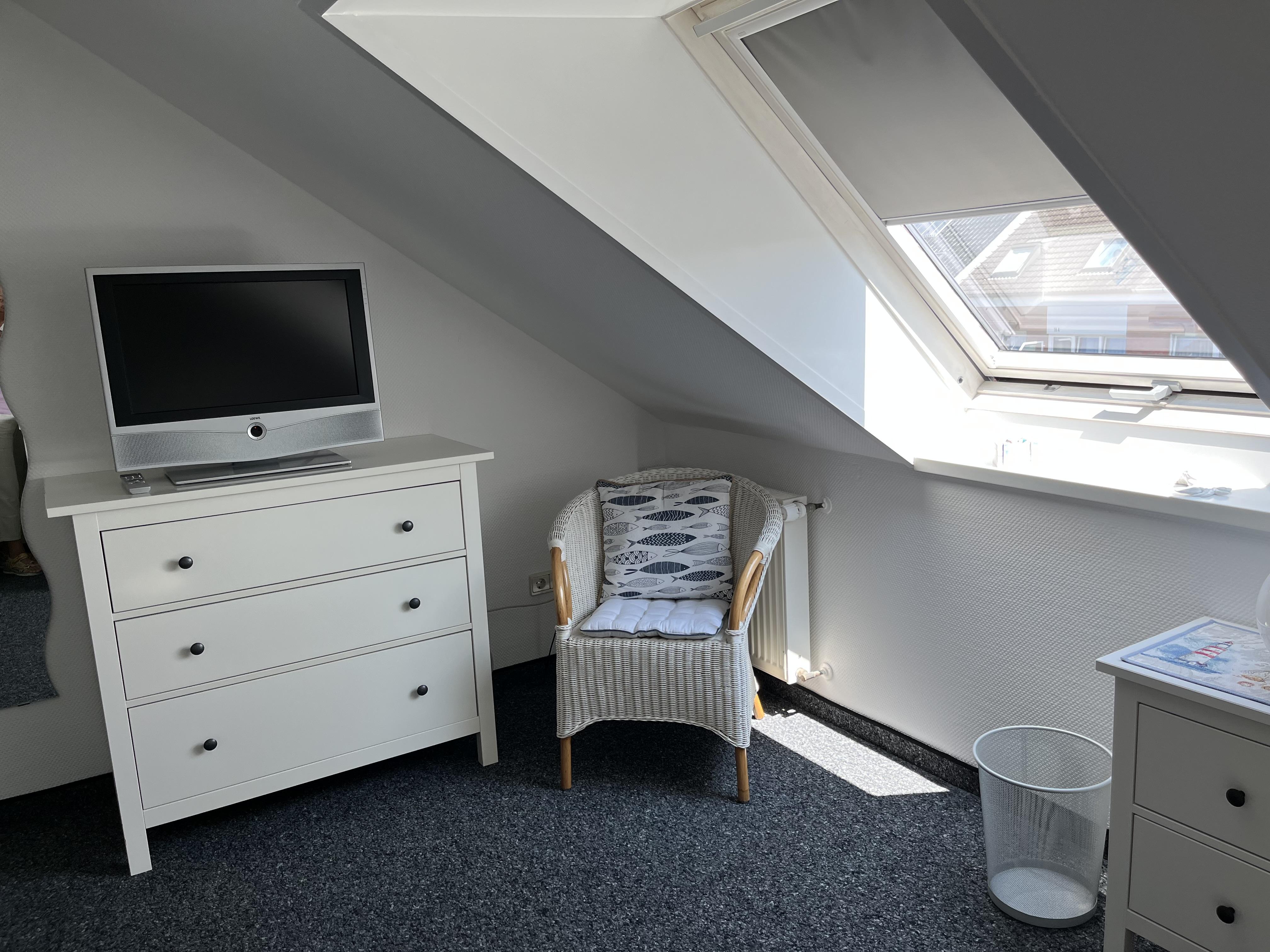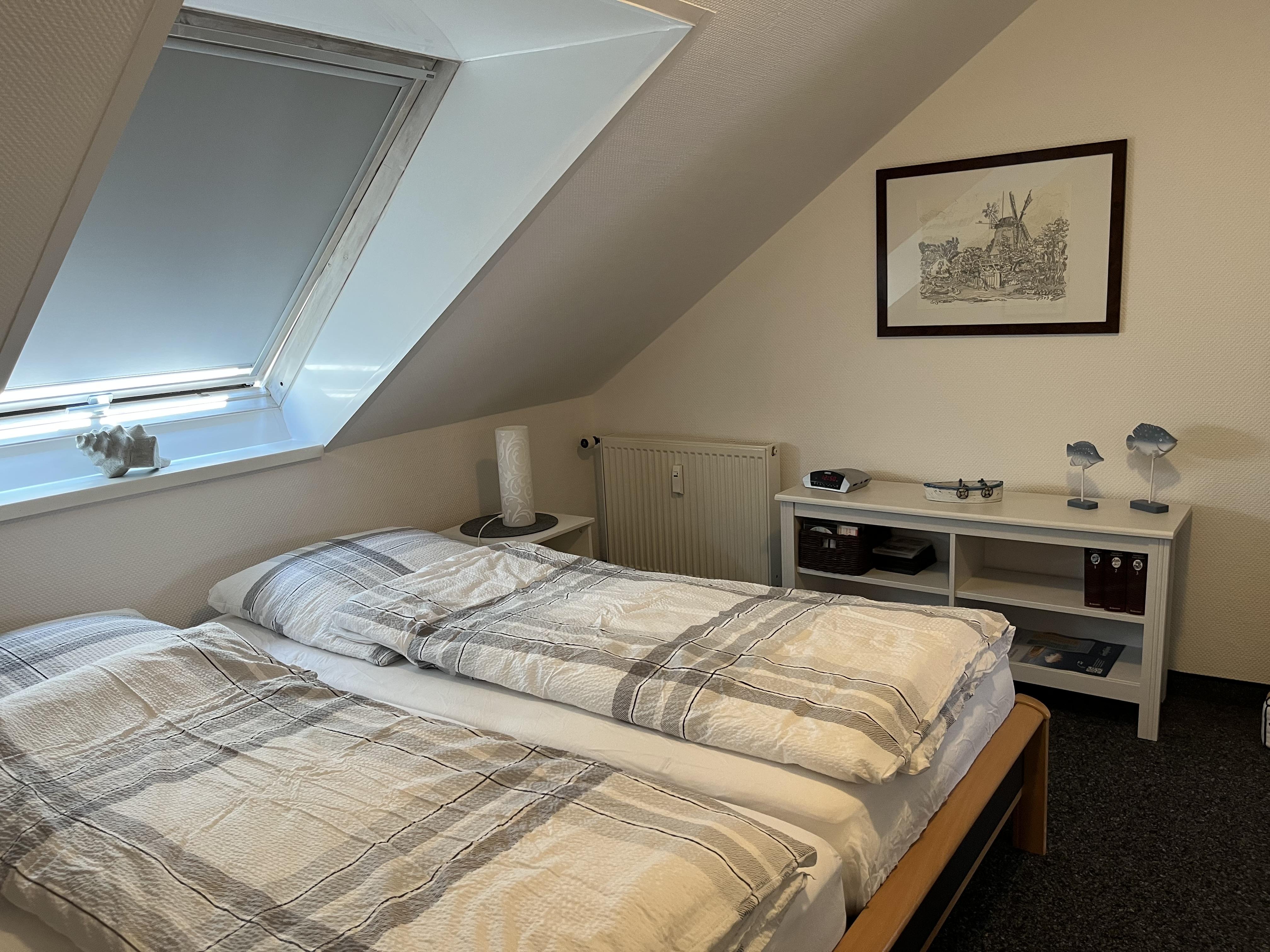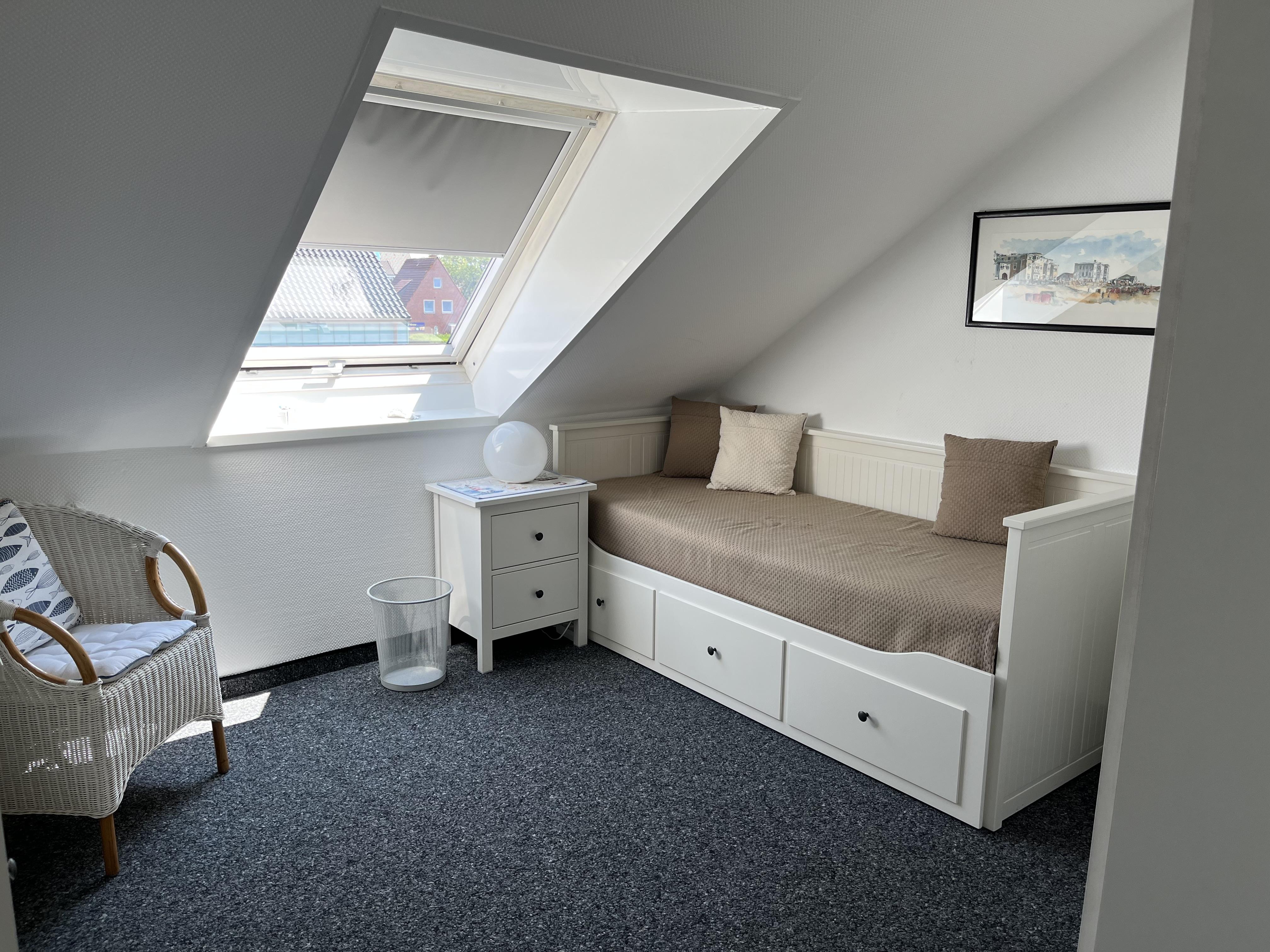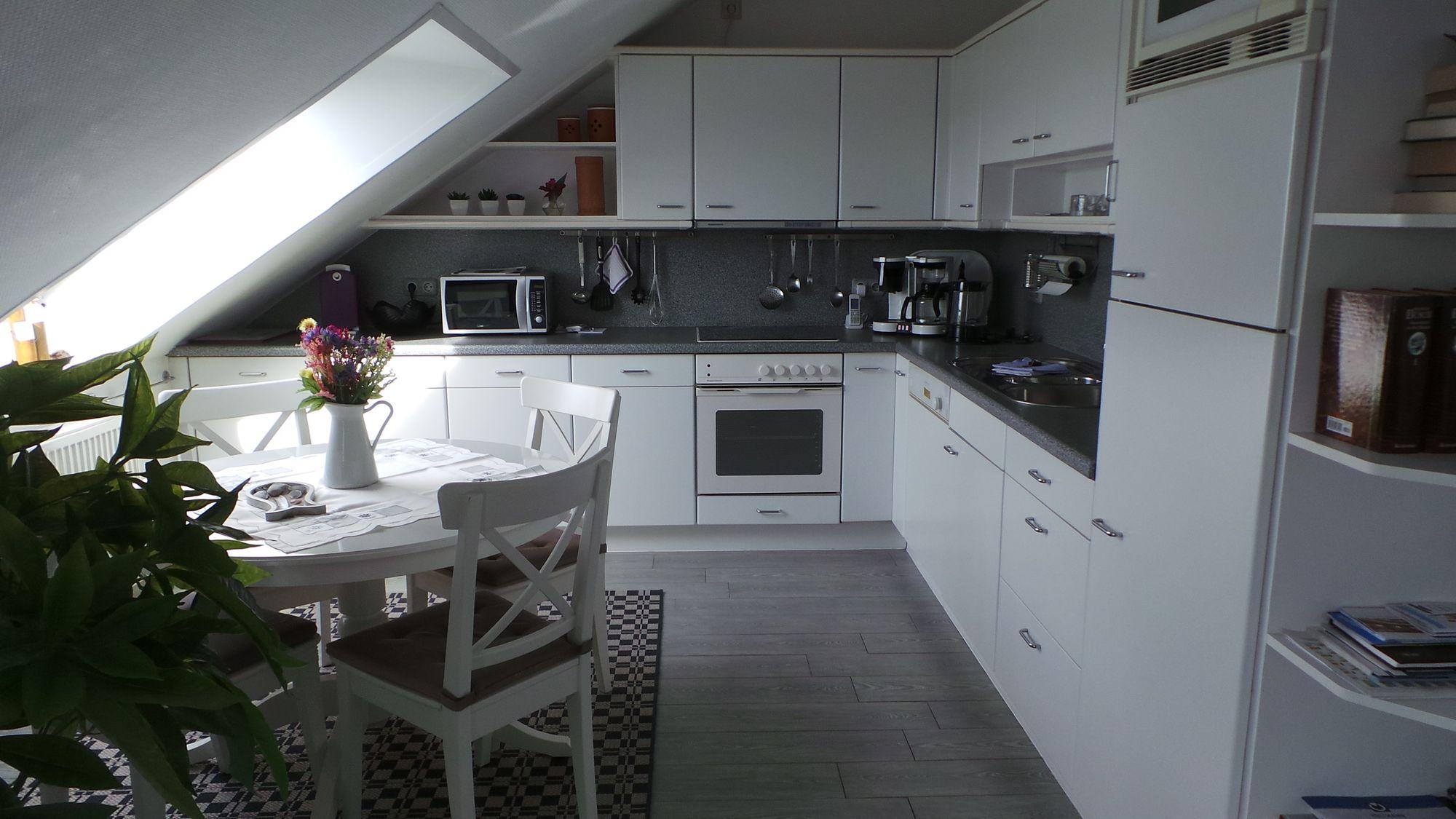 Freundliches, liebevoll und komplett eingerichtetes 3-Raum-Appartement/ Dachgeschoss 2. OG Nähe Nordstrand, ruhige Lage (Sackgasse). Sat-TV mit DVD-/Videoplayer, Spülmaschine.