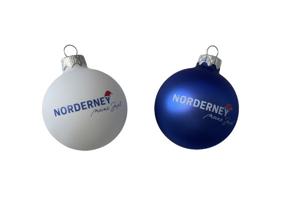 Farben: weiß und blau mit weihnachtlichem "Norderney meine Insel"- Schriftzug