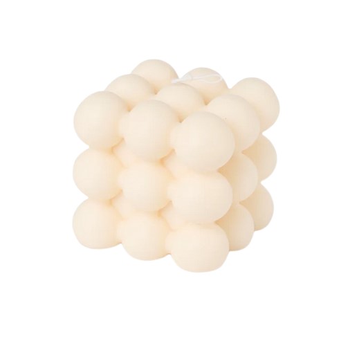 Kerze im Bubble-Desgn in cremefarben. Die Kerze wird von Hand aus ökologischem Rapswachs in München gegossen. Farbe: weiß Die Kerze nie unbeaufsichtigt brennen lassen! |